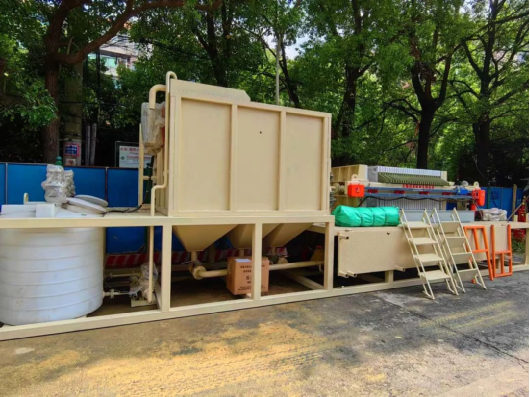 項目創(chuàng)新使用板框壓濾機技術(shù),使用濾布壓緊板框,可有效分離水和固體物質(zhì),過濾有害物質(zhì)。處理后的水,能變廢為寶直接用于工程,同時泥漿變成固體狀物質(zhì),便于運輸和處理,既環(huán)保又能節(jié)省空間。