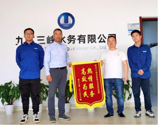“多虧你們的幫助現在下水道疏通了,出門也不會聞到臭味了。近期,九江市賀家垅小區雅仕公寓居民代表來到九江三峽水務公司,將一面寫有“熱情服務,高效為民”的錦旗送到管網運維工作人員手中,感謝九江水務公司為他們解決了排污下水管道堵塞污水冒溢問題。