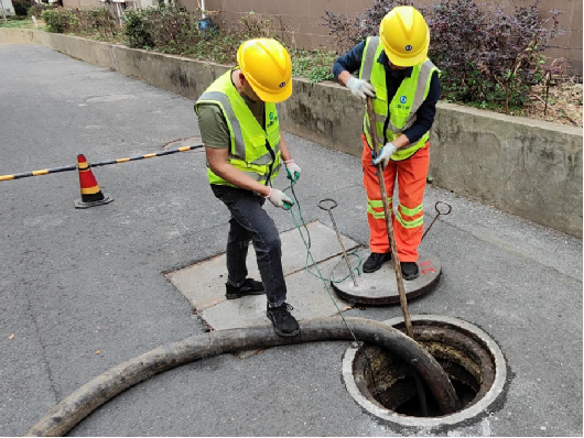 管網運維部工作人員正在進行下水道清淤工作 攝影:程文靜