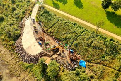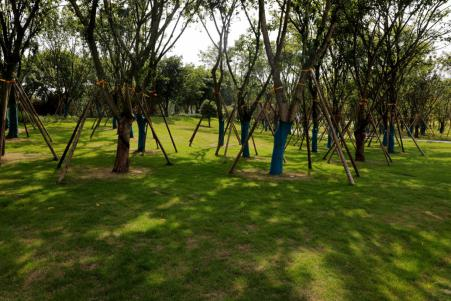 修復措施包括對自然狀態不完整,已經遭到破壞的山體采取生態固土、植被補植等措施形成生態護坡以及臺地花園;對裸露的山體進行修復,打造綠色生態景觀,提高山體水源涵養和植被動物承載能力。比如對開山取石的山體,依據以前的山勢走向和周圍的植被環境,用山石料填補因開挖形成的缺口,使陡峭的山勢變得平緩。待山體趨于平穩,再種植樹木等植被,讓遭受破壞的山體恢復以前的自然生態。在山頂,以自然恢復為主,突破山地土層薄、頁巖厚、土壤貧瘠、水網錯綜復雜、部分溪流常年斷流、湖塘水質欠佳等難題,為植被創造良好的生長環境,恢復了18條溪流生態景觀。