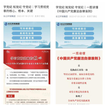 推進以學促宣。深入學習宣傳中央八項規定及其實施細則精神、《中國共產黨紀律處分條例》等重要法規和《集團公司違紀違規員工懲戒辦法》《集團公司員工廉潔從業辦法》《公司員工廉潔從業規定》等反腐倡廉制度。公司微信公眾號開設“學黨紀、知黨紀、守黨紀”專欄,解讀黨規黨紀,時刻提醒督促全體員工嚴守紀律規矩,防止行差踏錯。