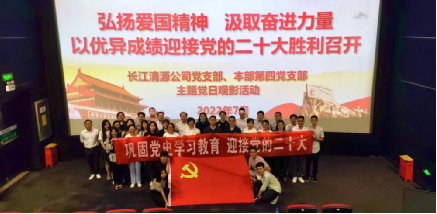 圖為7月26日,長江清源公司黨支部與本部第四黨支部聯合開展“弘揚愛國精神 汲取奮進力量”主題黨日觀影活動,組織全體黨員和青年員工觀看愛國主義電影。