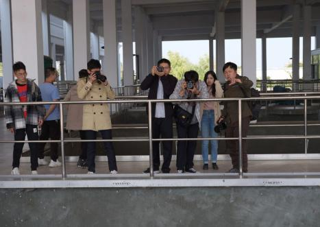 攝影愛好者在江東水生態(tài)公園進(jìn)行攝影練習(xí)? 拍攝:肖佳法